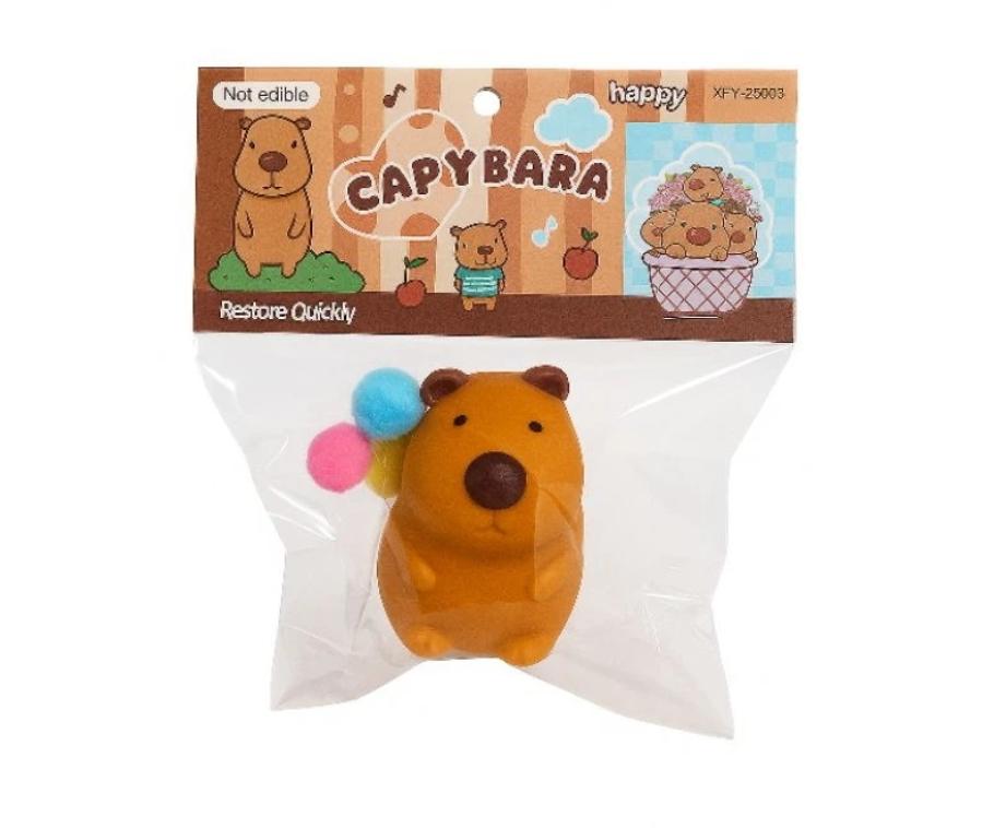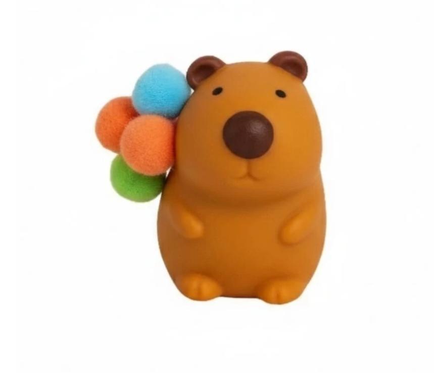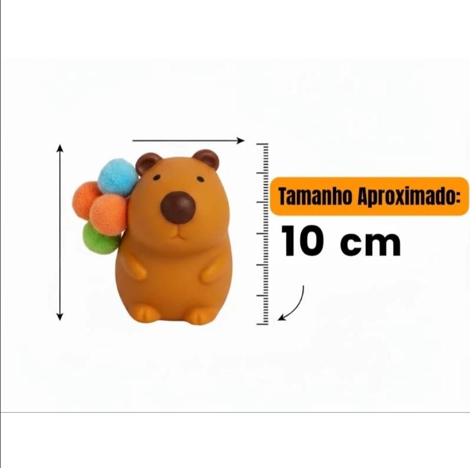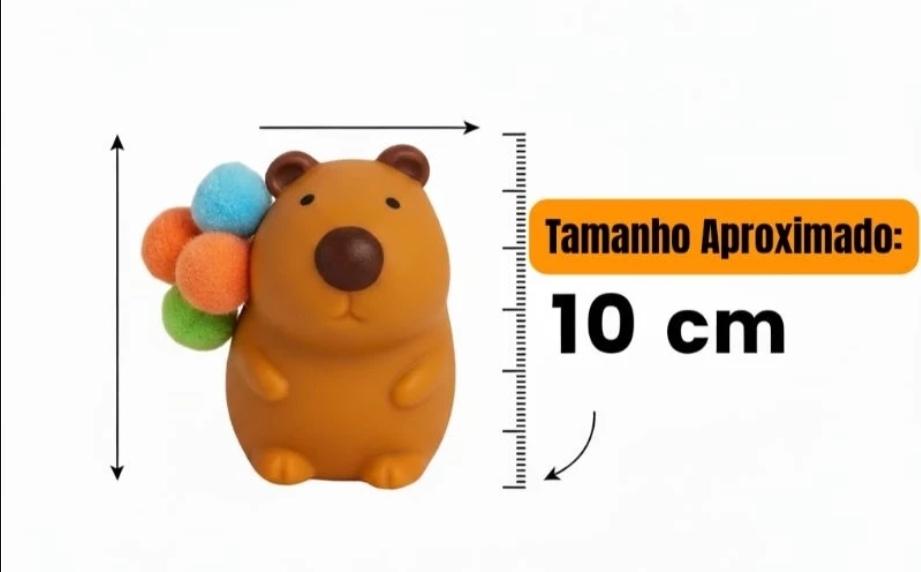 Uma capivara super fofa, feita de borracha macia, perfeita para apertar, aliviar o estresse e colecionar! Ideal para presentear ou decorar seu espaço com um toque de humor e fofura!