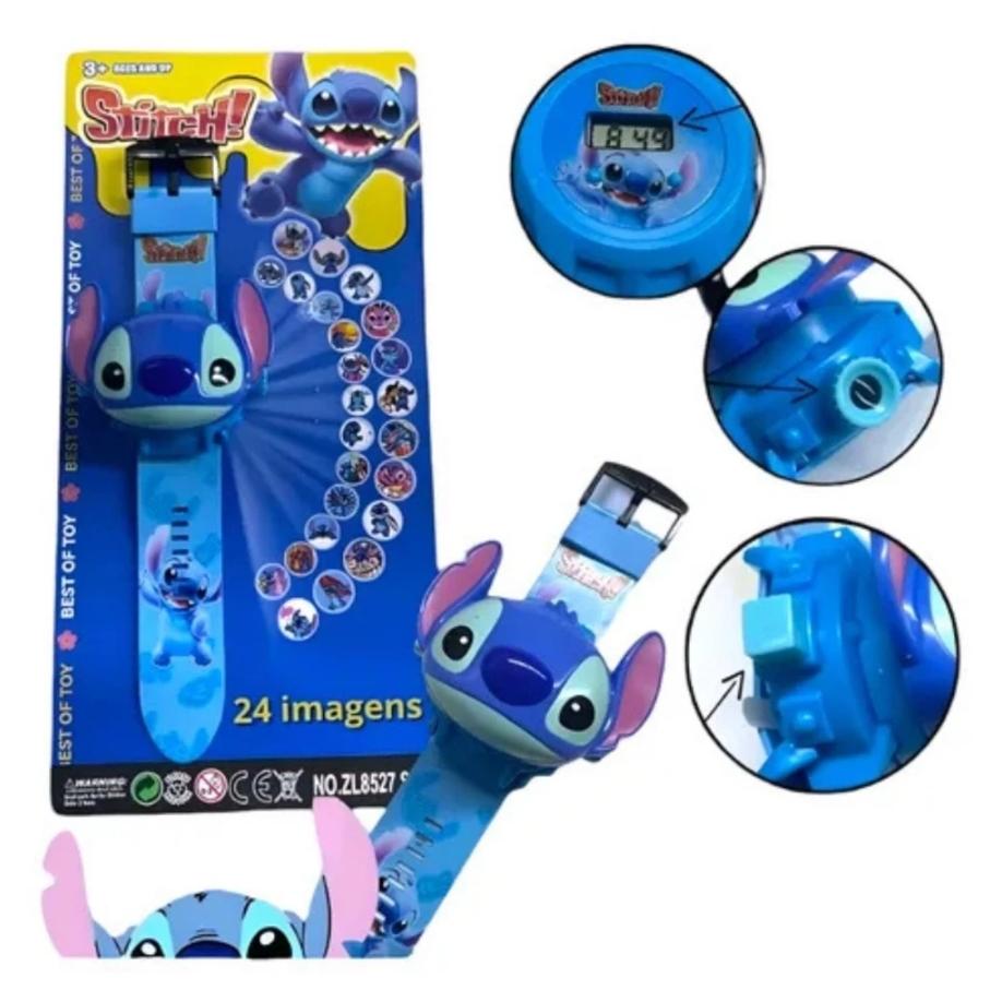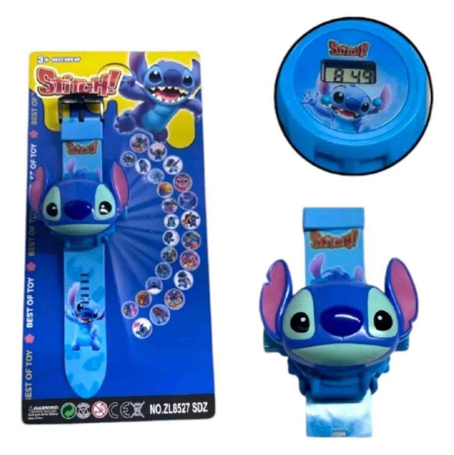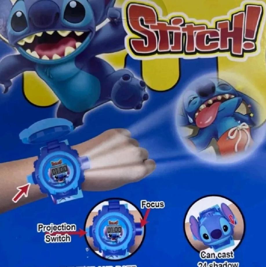 Relógio digital do STITCH com projetor de imagens, ótima diversão para as crianças.